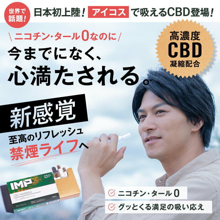 「IMP」は、iQOSなどの加熱式タバコで吸うことができる、CBDスティックなのです。